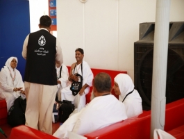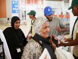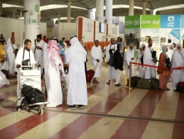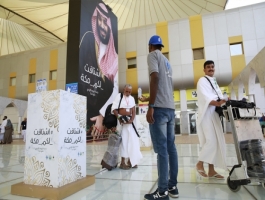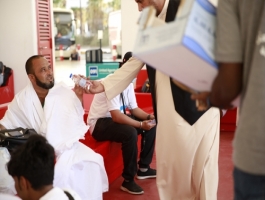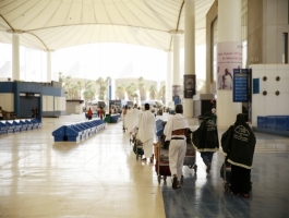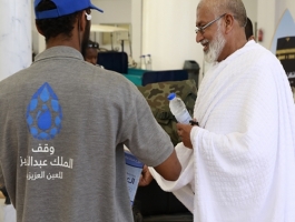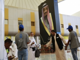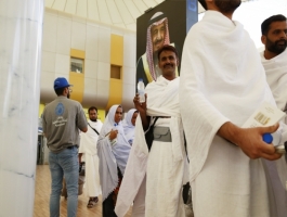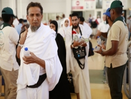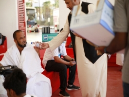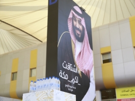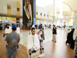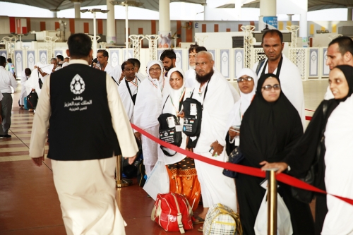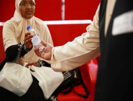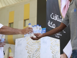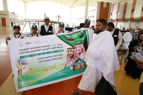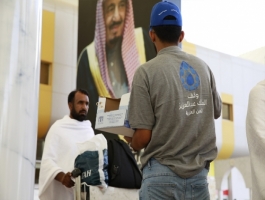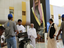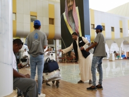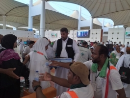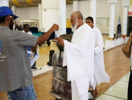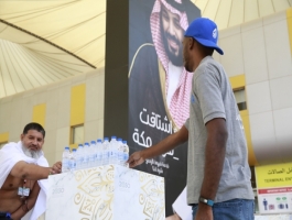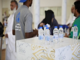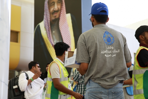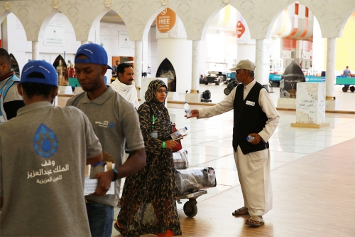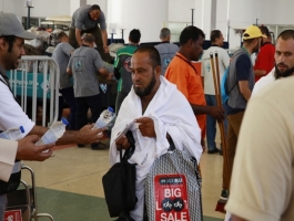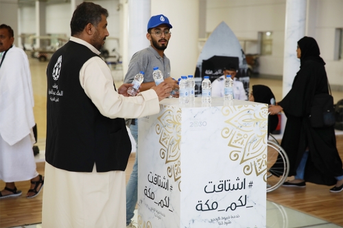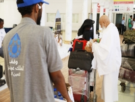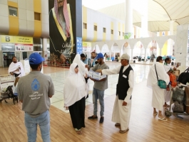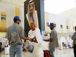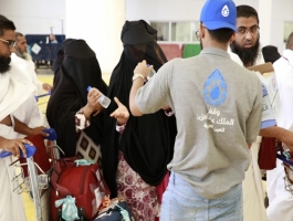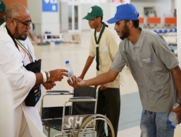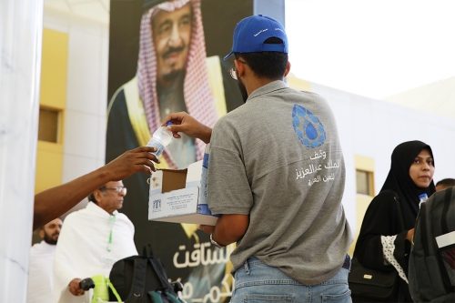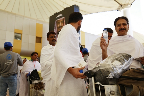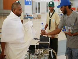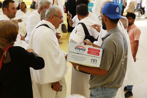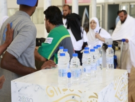 توزيع عبوات مياه الشرب المبردة على الحجاج في مطار الملك عبد العزيز الدولي