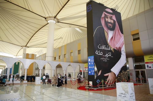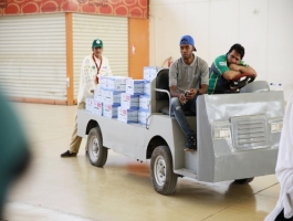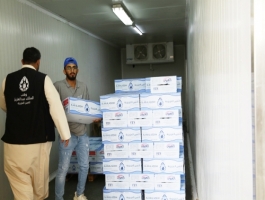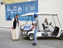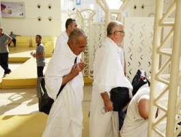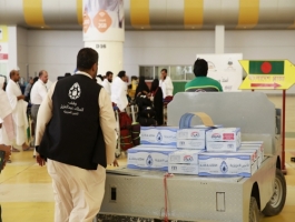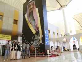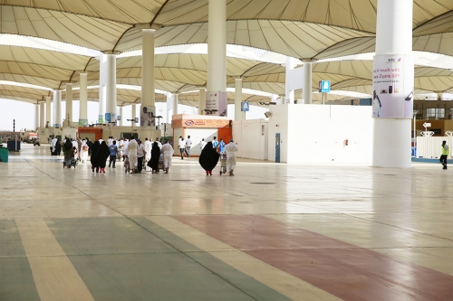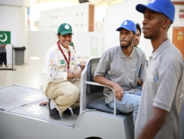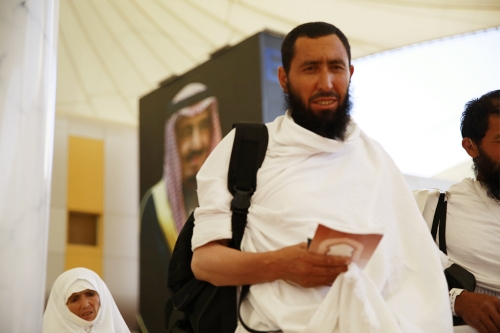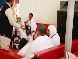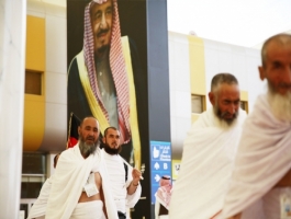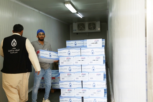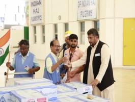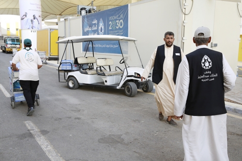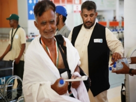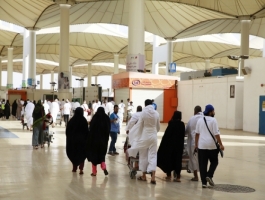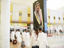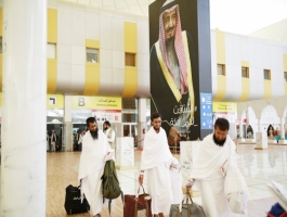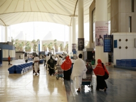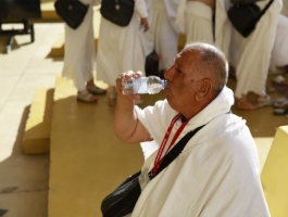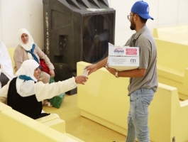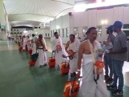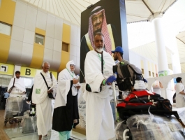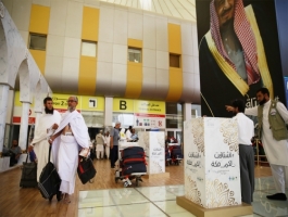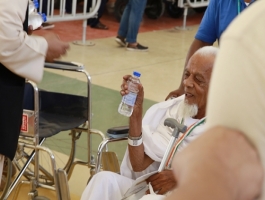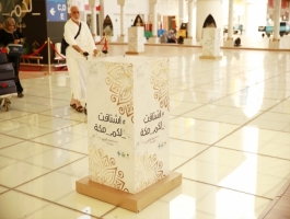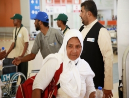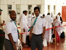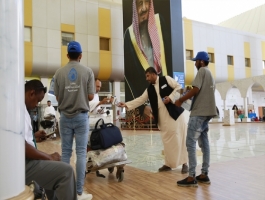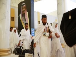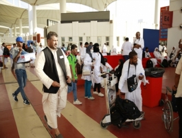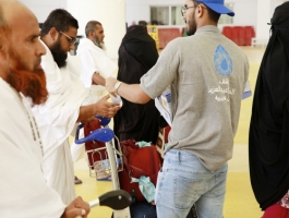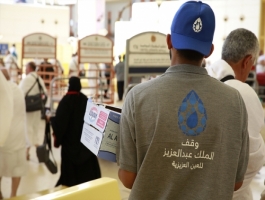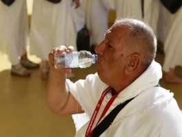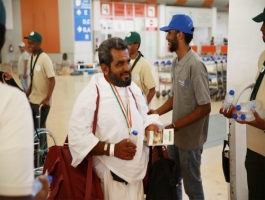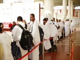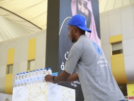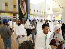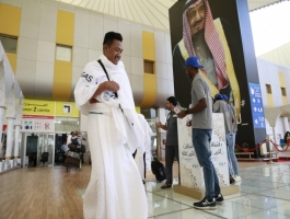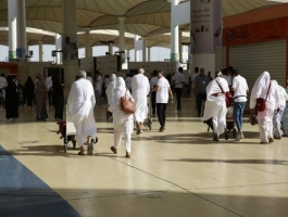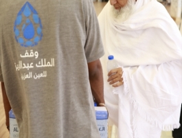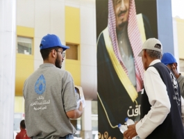 توزيع عبوات مياه الشرب المبردة على الحجاج في مطار الملك عبد العزيز الدولي