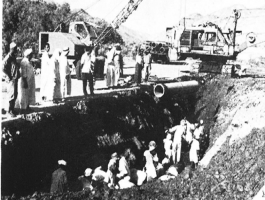 وكذلك التوصيلات الرابطة للآبار بهذا الخط لضمان تدفق المياه بشكل مستمر وفعال.
